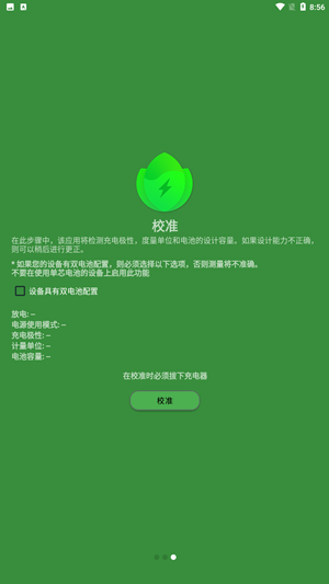 第一次运行软件时,提示需要进行一次电池校准,需要注意的是电池校准时要在未充电的情况下进行。