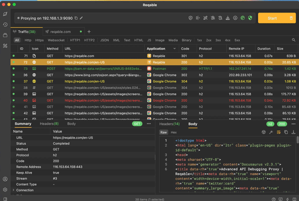 Reqable for Mac是一款专为苹果macOS系统设计的深度网络分析利器,继承移动端高效抓包基因,结合桌面级扩展能力,为开发者、网络安全工程师及高级用户提供全方位网络流量监控解决方案。无论是调试复杂API、分析应用通信协议,还是监控多设备联动流量,Mac版都能以专业级性能满足需求。同时支持全协议深度解析,协议全覆盖,可支持HTTP/1.x、HTTP/2、HTTP/3,精准还原网络会话。另外软件内置隐私规则库,自动识别身份证号、银行卡号、API密钥等敏感信息。特别是软件跨平台协同,多设备联动:通过iCloud或本地网络同步抓包配置,支持iOS/Android/Mac/win无缝协作,有需要的用户可以在本站免费下载使用。