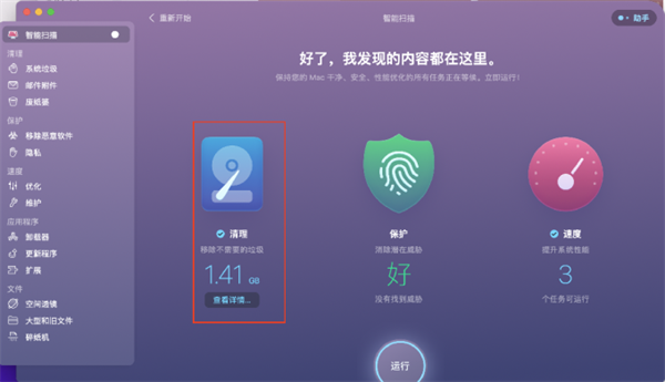 清理您的浏览器的浏览历史等各种软件过时的使用记录、历史消息和大量的其他私人信,并为您优化释放 Mac 内存。