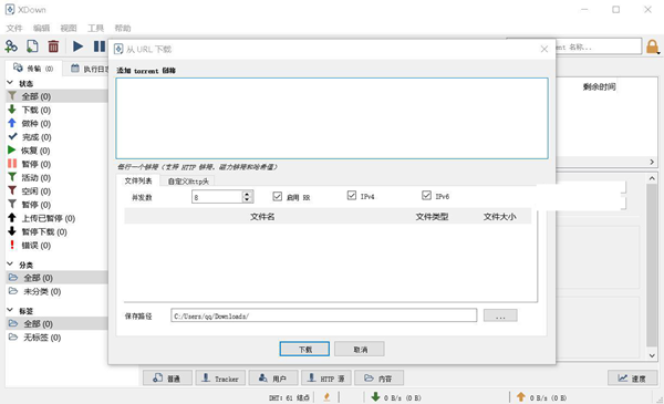 XDown是一款IDM/torrent合成体开源下载器,完全免费,并且没有广告,支持128并发多线程下载,支持标准FTP/HTTP/HTTPS/HTTP2协议 ,支持BT种子、磁力链接、百度网盘Aria链接,支持制作BT种子文件,支持下载You*Tube视频,功能强大值得使用。