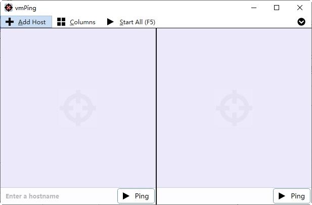 默认界面为双面板,可同时ping两个IP地址。用户可通过点击“+添加主机”按钮增加面板,或通过“列”按钮改变面板的显示样式。