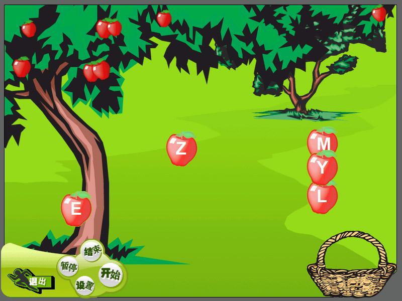 3、游戏的规则很简单,下落的苹果上有字母,敲击键盘上对应的字母方可接住苹果。