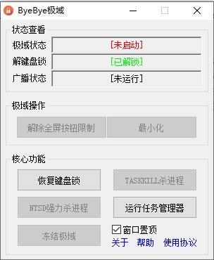再见极域是由吾爱网友免费分享的一款免费的极域电子教室破解工具,它是一个很棒的极域电子教室克星,使用它就可以帮助用户在上网课的时候解除屏幕的解锁,可以提供解除全屏按钮限制,最小化等功能,还拥有恢复/解除键盘锁,缩小窗口等功能,用户通过这款软件能直接解锁相关内容,非常实用。方便用户更加轻松的解锁并了解教室,有需要的朋友赶快来下载体验吧!!!