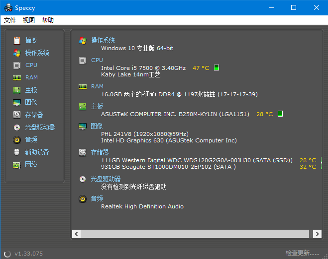 Speccy是Piriform公司所开发的一款硬件检测工具,通过它,可以准确识别您的电脑硬件配置详细信息,让您对爱机做到心中有数。特别是在攒机时还能有效避免被奸商蒙骗。有需求的朋友可以来下载体验。