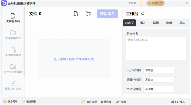 金舟批量重命名软件是一款文件批量改名工具,功能简洁、操作简便、侧重实用,支持批量上传多个文件,进行文件名修改等操作,不限制文件类型/文件格式,轻松替换转换部分文件名,排序/替换/修改扩展名,是一款专业好用的文件批量重命名软件。用户可以通过鼠标点击轻松来完成添加文件、设定规则、批量改名的操作,并且还支持windows所有文件格式,让文件批量重命名更简单。同时,用户只需要一键批量上传多个文件,即可轻松对文件名进行重命名或修改扩展名,而且支持给文件添加序号,轻松整理排序多个文件,还支持将文件名中原有的大写字母转换成小写,或批量删除增加不分名称,让本地上传文件,安全高效,修改后不损坏文件。