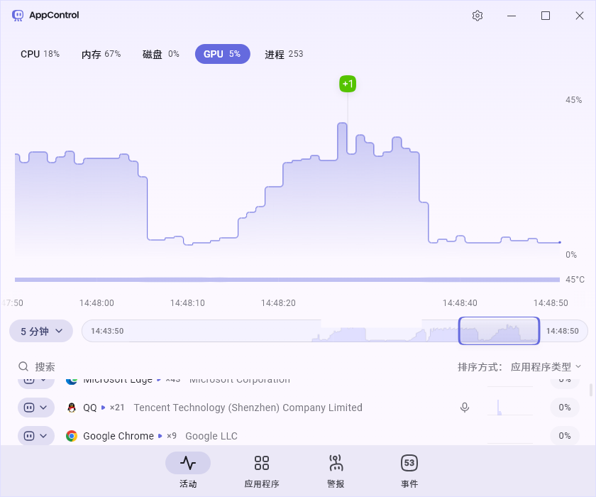 AppControl由资深开发者Jon Hundley打造,被誉为“具备历史记忆的高级任务管理器”。它不仅记录实时数据,更能保存长达三天的系统活动历史,让你能像回放录像一样,追溯任何时刻的CPU、内存、磁盘和GPU使用情况。配合强大的隐私监控和AI智能分析,它彻底将系统的黑盒变成了透明的玻璃房。