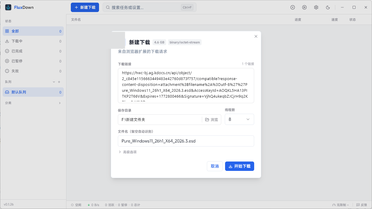 FluXDown是一款Rust 驱动的多协议下载工具,支持 HTTP/FTP/BitTorrent 磁力链接及 HLS/DASH 流媒体,智能多线程加速与浏览器无缝集成。精美界面,极致性能,永久免费,零广告。