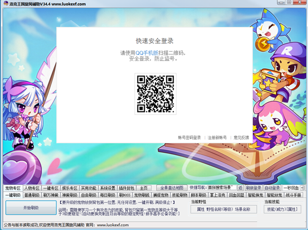 刷小游戏(学分 洛克币 体能 智慧魅力)、购买物品、出售物品、修改名字、更换皮肤表情、自动炼金、刷PK积分、自定义脚本模拟