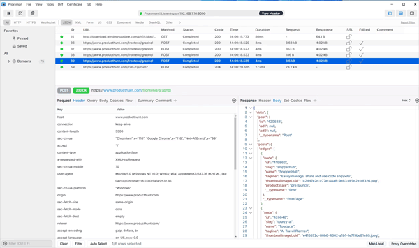 能够捕获和分析应用程序与SSL Web服务器之间的所有HTTP/HTTPS流量,方便开发者进行数据观察及流量分析。