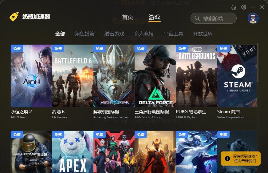 奶瓶加速器是虎牙专为Steam游戏玩家打造的一款网络加速工具,它采用了先进的智能路由技术和全球节点部署,为玩家带来稳定、快速的网络体验。在使用Steam商店下载游戏时,玩家常常会遇到速度很慢、连接不稳定甚至频繁断线的问题。而这款加速器通过其专业Steam优化功能,24 小时监控网络状态,智能优化网络路径,显著提升游戏下载速度,确保数据传输的高效与稳定。此外,不仅支持Steam平台上的在线游戏,还支持PUBG、英雄联盟国际服、魔兽世界等热门游戏,有效降低游戏延迟,为玩家带来更加畅快的游戏体验。有需要的小伙伴快来下载试试吧~